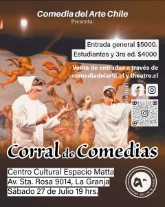 Leer más...Les invitamos a nuestro taller de comedia del arte que se realizará los días2 – 3 – 4 y 5 de Julio, de 19 a 22 hrs. Dirigido por @fabimoreno...